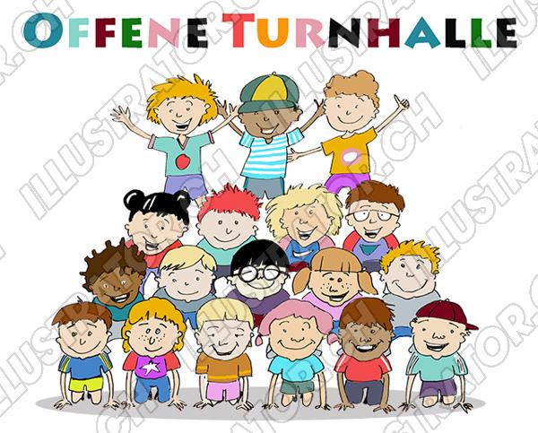 Tags: Sport Kinder Illustration Flyer Visual Veranstaltung offene Turnhalle