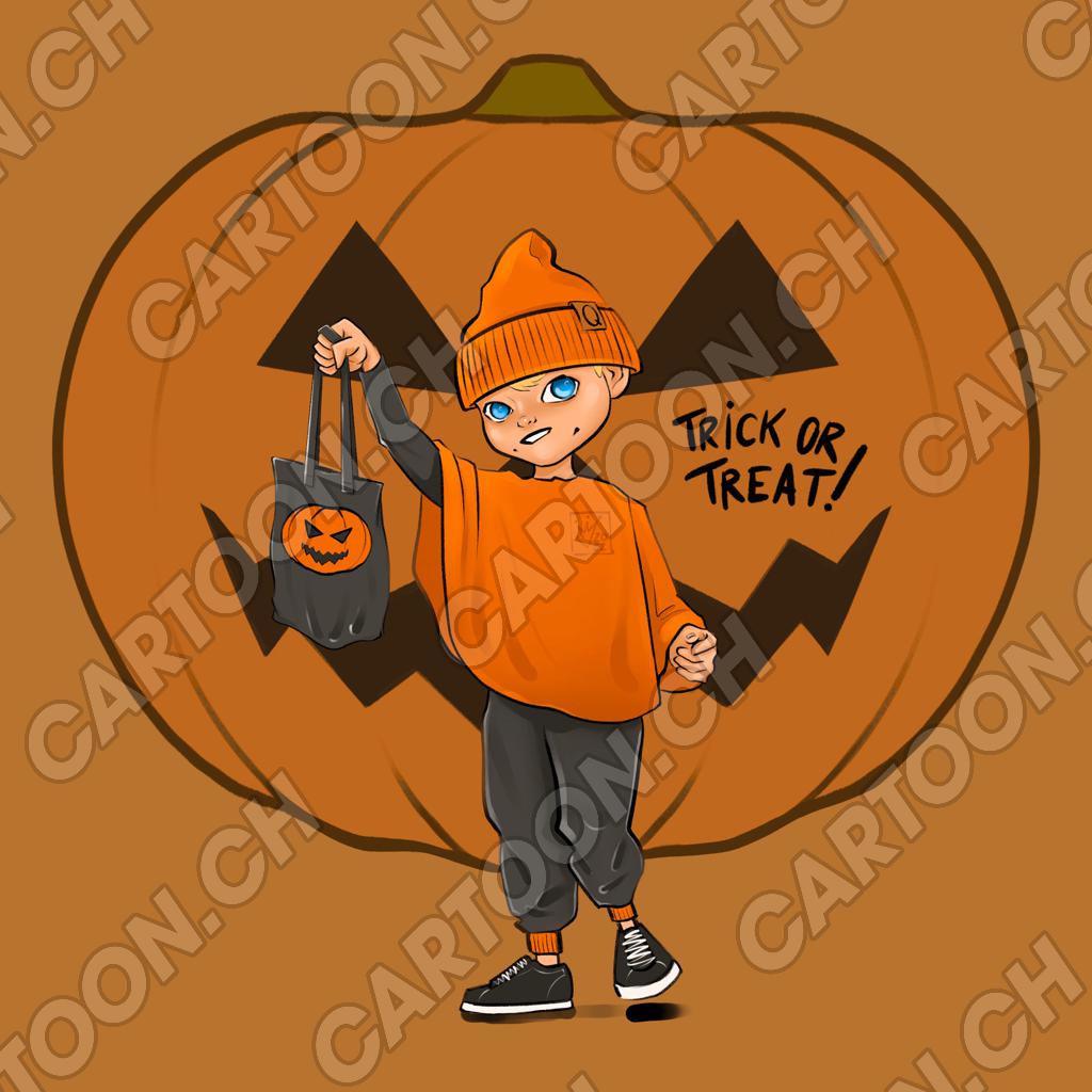 Tags: halloween kürbis junge kind motto Trick or treat kinder illustration