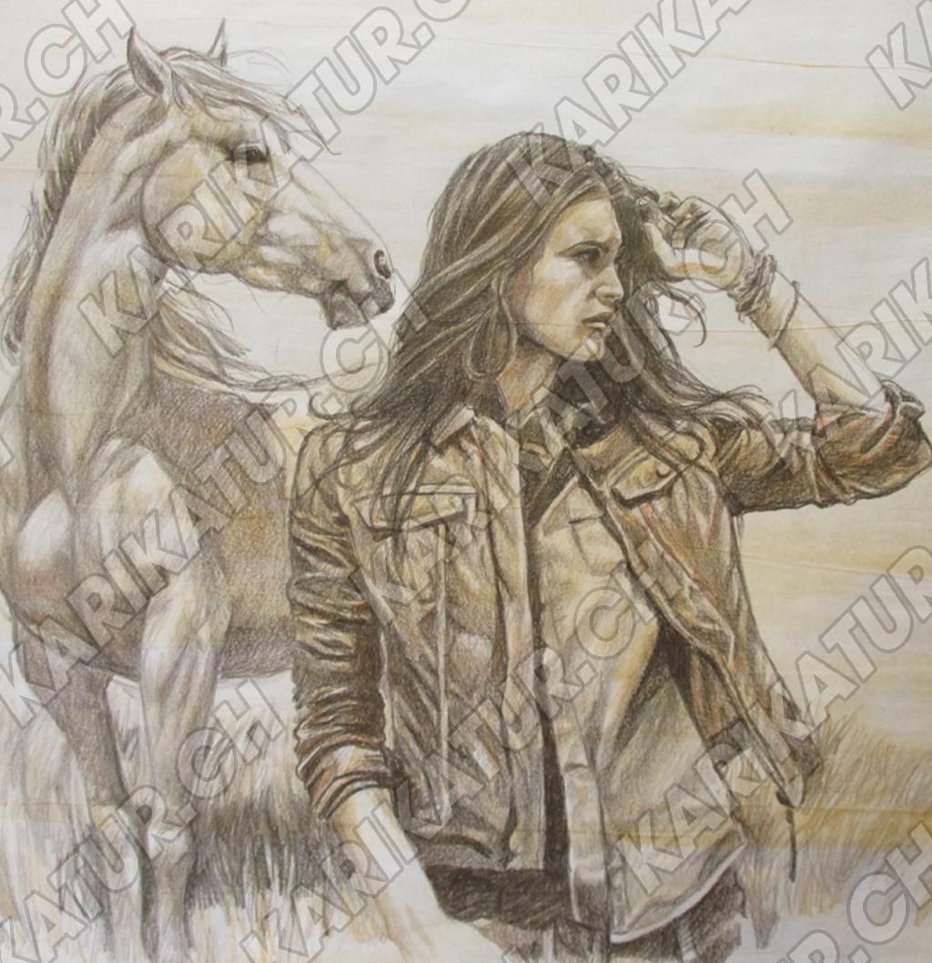 Tags: Pferd Zeichnung Tiere Frau realistisch naturalistisch Portrait mit Pferd