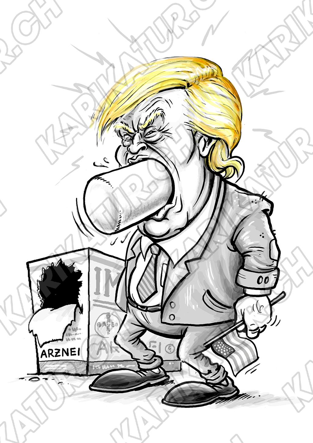 Tags: USA Amerika Medikament Karikatur Politik Helgen Schnitzelbank Trump Donald Politkarikatur Arznei
