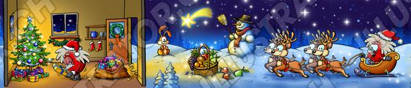 Tags: Karte farbig Weihnachten Winter Schnee Sterne Nacht bunt fröhlich Festtage Weihnachtskarte Schneemann XMAS Schlitten Rentiere festlich Geschenke