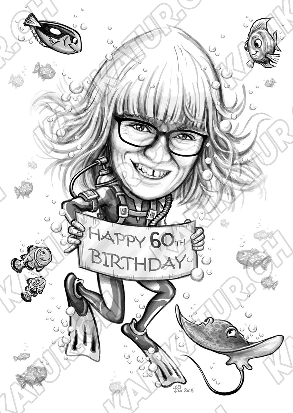 Tags: Geburtstag Karte Karikatur Foto Geschenk lustig Meer Fische Tauchen Unterwasser Flossen