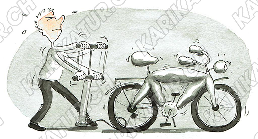 Tags: Fahrrad Velo Freizeit Inflation übertreiben Pumpen Masslosigkeit Sinnlosigkeit Flicken Reparieren Hobby. bike